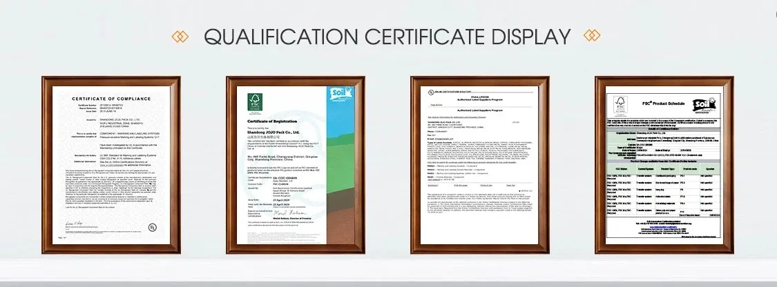 Jojo Pack е производител на етикети и налепници со повеќе од 30 години искуство со печатење. Нашата компанија има добиено сертификација на FSC и UL, а квалитетот на нашите производи е целосно во согласност со меѓународните стандарди.