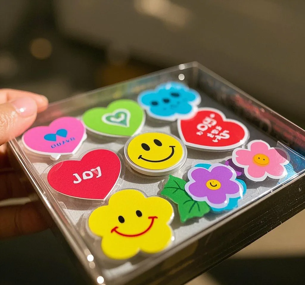 Шарените налепници од Jоо Пак се изработени од еколошки материјали и се безбедни и нетоксични. Нашите разнобојни налепници се фокусираат на висок квалитет и персонализација, погодни за широк спектар на луѓе, од деца до возрасни. Без разлика каква големина, боја, материјални клиенти имаат потреба, нашата компанија може да им обезбеди на клиентите прилагодени услуги за да ги исполнат барањата на клиентите, да обезбедат задоволителни шарени налепници.