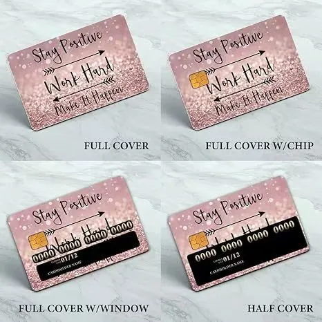 Налепници за кредитни картичкидоаѓаат во различни стилови, вклучувајќи целосен капак, половина капак, покријте со прозорец за бројот на картичката или чипот и покријте со претходно исечена површина за микрочипот. Големината обично е дизајнирана да одговара на стандардни големини на кредитни картички, приближно 5,3*8,5 см.