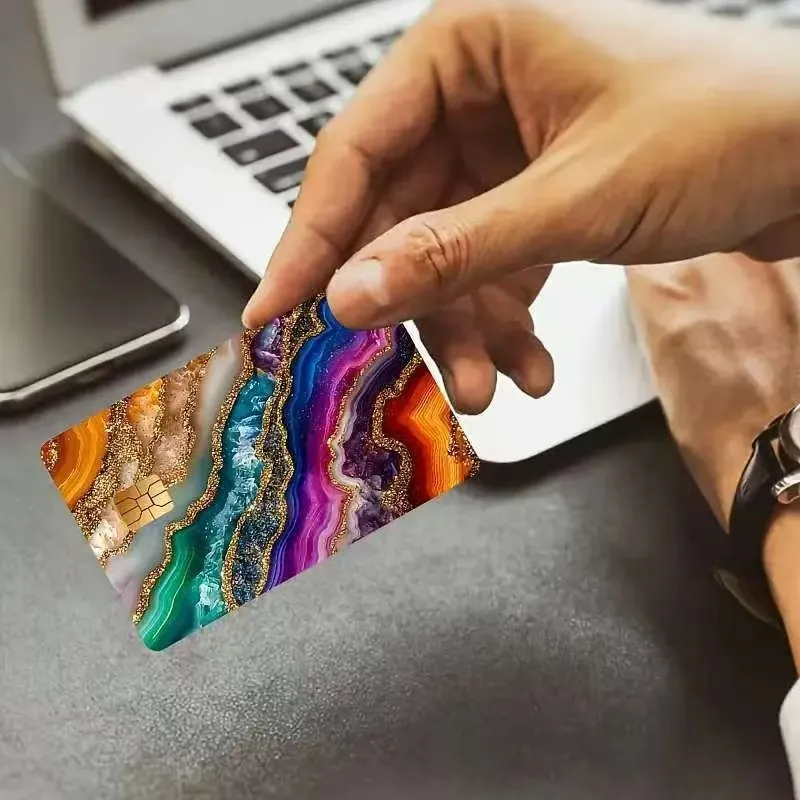 Најновите продадени налепници за кожа на кредитни картички се површински филм специјално дизајниран за кредитни картички. Лесен е и има силна адхезија. Може точно да одговара на големината на кредитната картичка. Може да го украси изгледот на картичката и да обезбеди основна заштита за картичката.