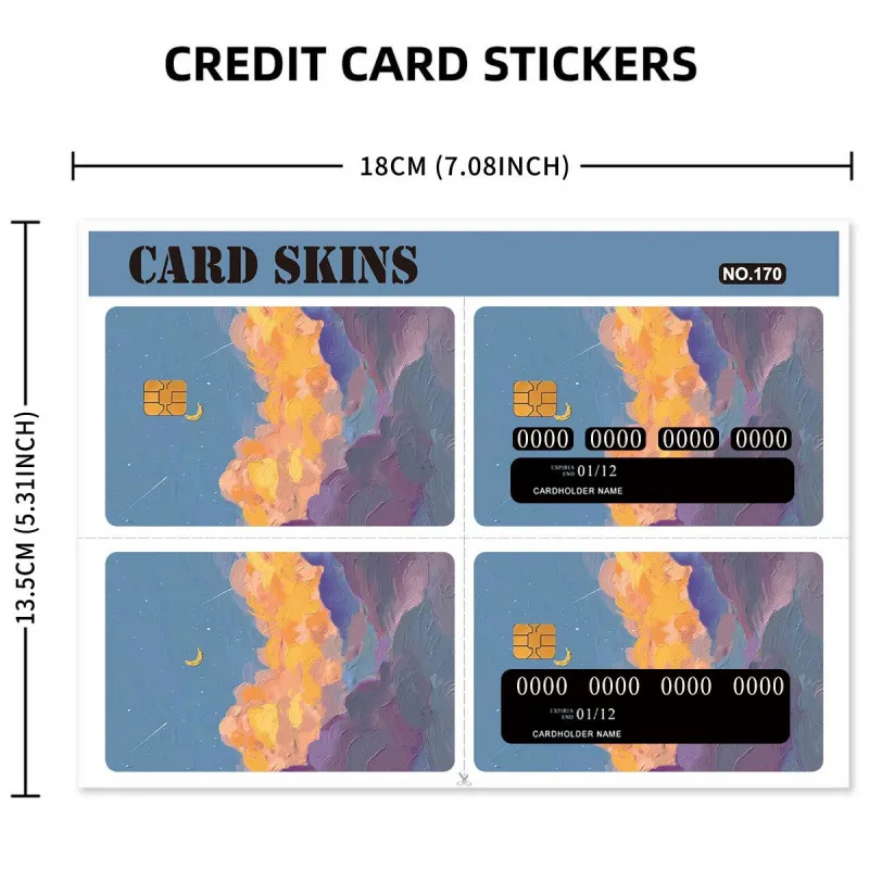 Налепници за кредитни картичкисе персонализирани декоративни налепници кои можат да бидат заглавени на површината на кредитни картички. Тие се изработени од ултра тенки и еколошки материјали и не влијаат на нормалното прелистување на картичката или читањето на чипот. Не само што им овозможува на кредитните картички да покажат уникатен стил, туку некои производи имаат и практични функции како што се анти-SWIPE (блокирање на РФИД), а во исто време прилагодување на логото за поддршка. Тоа е производ кој комбинира убавина и практичност.