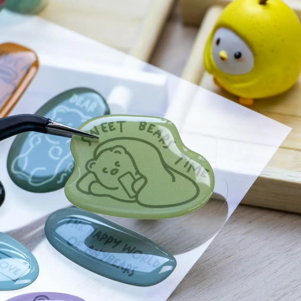 А1: Користиме врвни суровини: трајни лепливи подлоги (винил, ПЕТ или хартија), еколошки мастило за печатење со висока дефиниција и епоксидна смола од индустриско ниво. Смолата гарантира дека 3D куполестите налепници имаат силна отпорност на гребење и долготраен сјај.