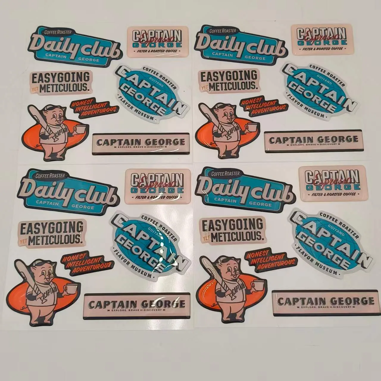 3D: Благодарение на проѕирниот слој од епоксидна смола нанесен над отпечатениот дизајн, овие налепници можат да се пофалат со подигнат, тродимензионален изглед. Ова додава тактилна и визуелна длабочина со која рамните налепници едноставно не можат да се совпаднат, што ги прави повпечатливи на прв поглед.
