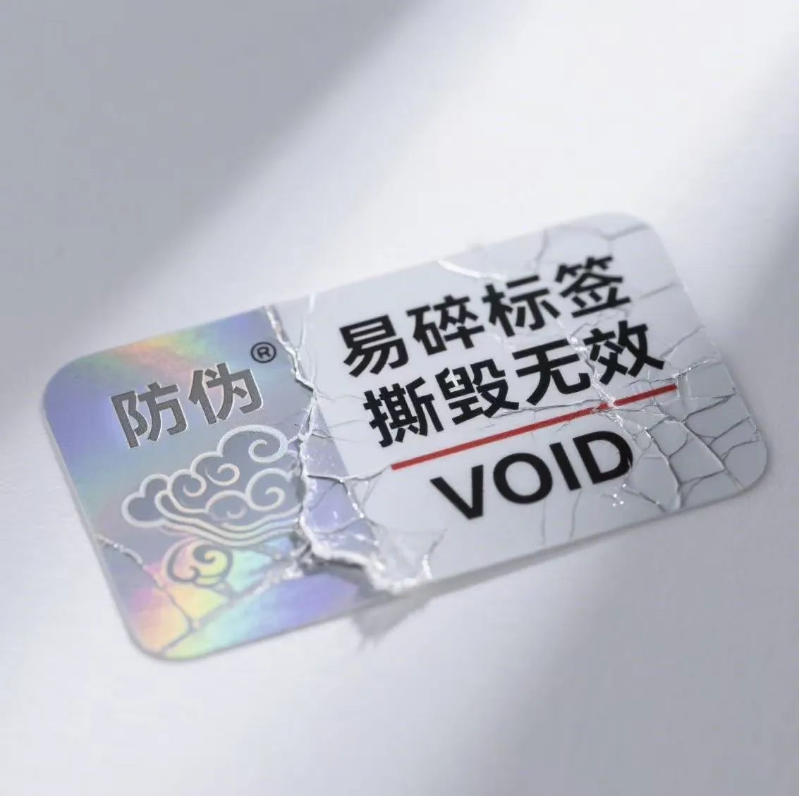 1. Висока кршливост: Самиот основен материјал има екстремно висока кршливост. Откако ќе биде подложено на сила за кинење, веднаш ќе се пробие во неправилни мали парчиња, не можејќи да биде целосно излупено или повторно да се приведе. Ова физички ја блокира можноста повторно да се користи етикетата за анти-контрафејтирање.