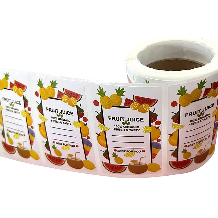 Етикети за шишиња со соксе етикети специјално дизајнирани за шишиња со сокови.Етикети за шишиња со сокне само што може да ја подобри убавината и препознатливоста на пакувањето на производот, туку и ефикасно да ги пренесе информациите за производот и вредноста на брендот.Етикети за шишиња со соксе направени од висококвалитетни материјали и имаат добри водоотпорни, отпорни на влага, отпорни на температура и други својства, а можат да одржуваат светли бои и јасни обрасци во различни средини.
