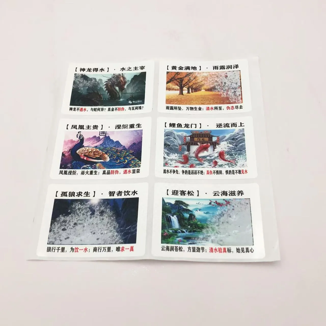 A етикети чувствителни на водаинтелигентен материјал испечатен со специјална структура на мастило на база на вода. Кога се изложени на вода или други проѕирни течности, тие брзо ја апсорбираат влагата, предизвикувајќи етикетата да стане речиси транспарентна за околу 1 секунда - откривајќи скриени обрасци или текст. Откако течноста ќе испари, некои видови картички може да се вратат во првобитната состојба за повеќекратна употреба.