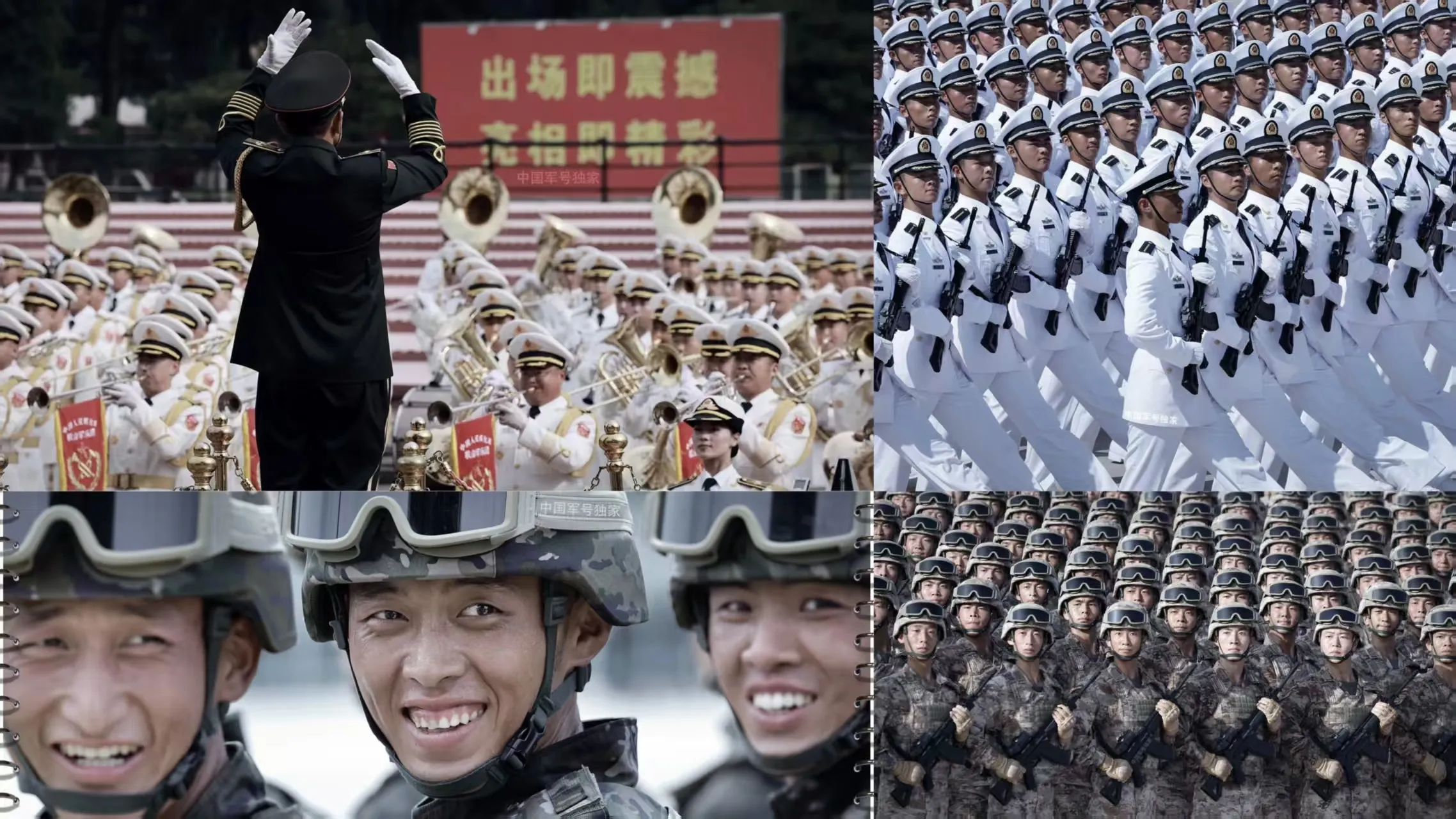 На плоштадот Тијананмен, 45 формации и ешалони поминаа во низа, а заеднички воен бенд составен од повеќе од илјада офицери и војници ги играа моќните звуци од ерата.