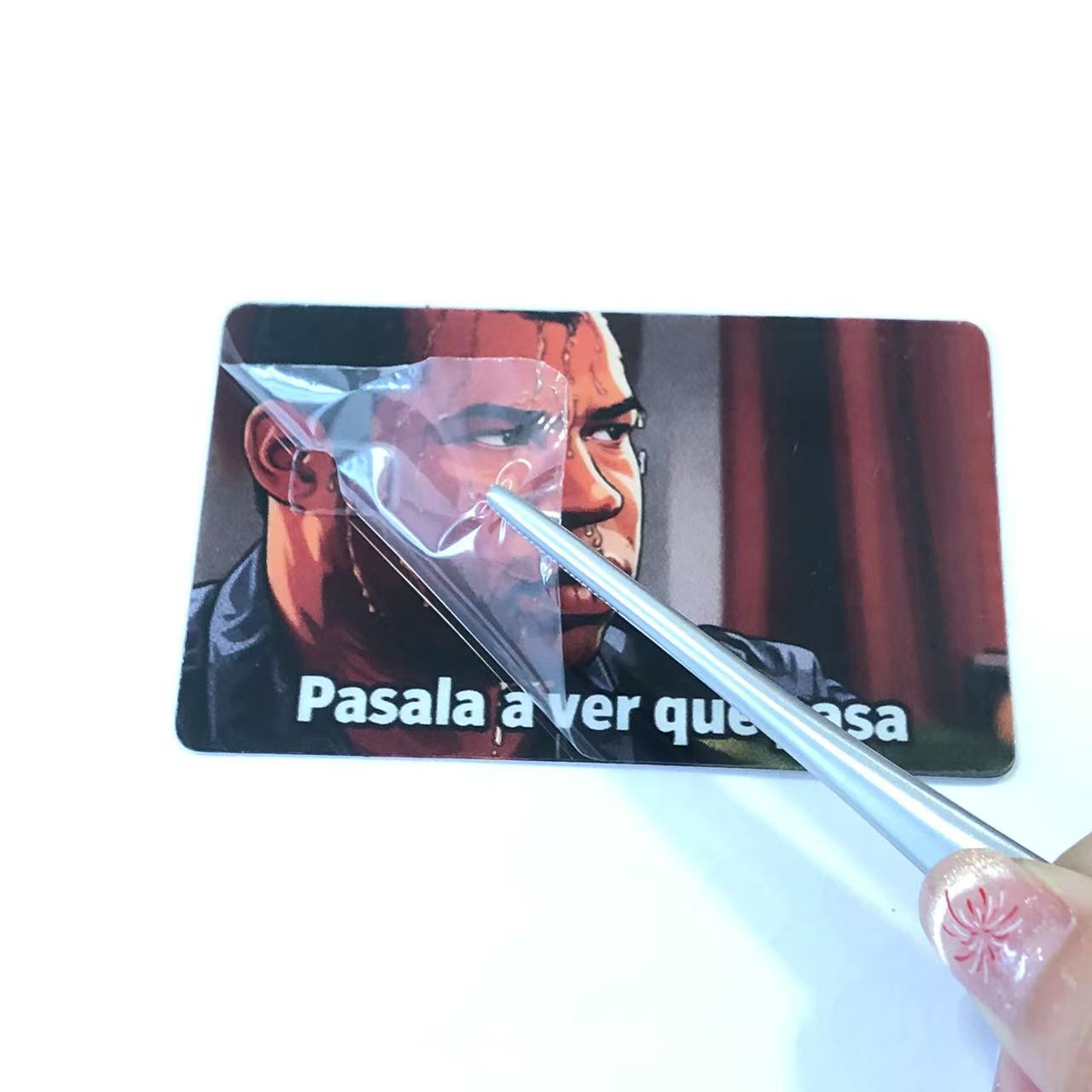 За да се обезбеди квалитетот на производот за време на транспортот, секоја налепница за кредитна картичка е опремена со заштитна фолија на површината. Овој заштитен слој ефикасно ги штити налепниците од гребнатини, прашина и други потенцијални оштетувања што може да се појават при транспорт. По приемот на стоката, клиентите треба само да ја олупат заштитната фолија за да го откријат чистиот и живописен изглед на налепниците на кредитните картички.