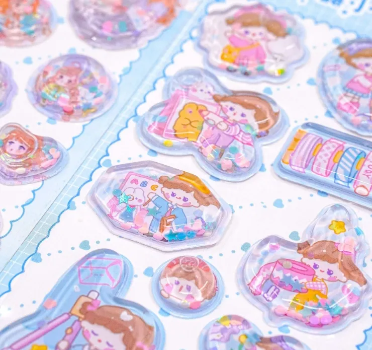 Предмети за украсување: Децата можат да украсат свои предмети, како што се тетратки, торбички за училишта, случаи со моливи, итн. Со употреба на налепници, правејќи ги овие предмети уникатни. Тие ќе ги залепат децата налепници на различни позиции според нивните преференции и идеи, создавајќи свој персонализиран стил.