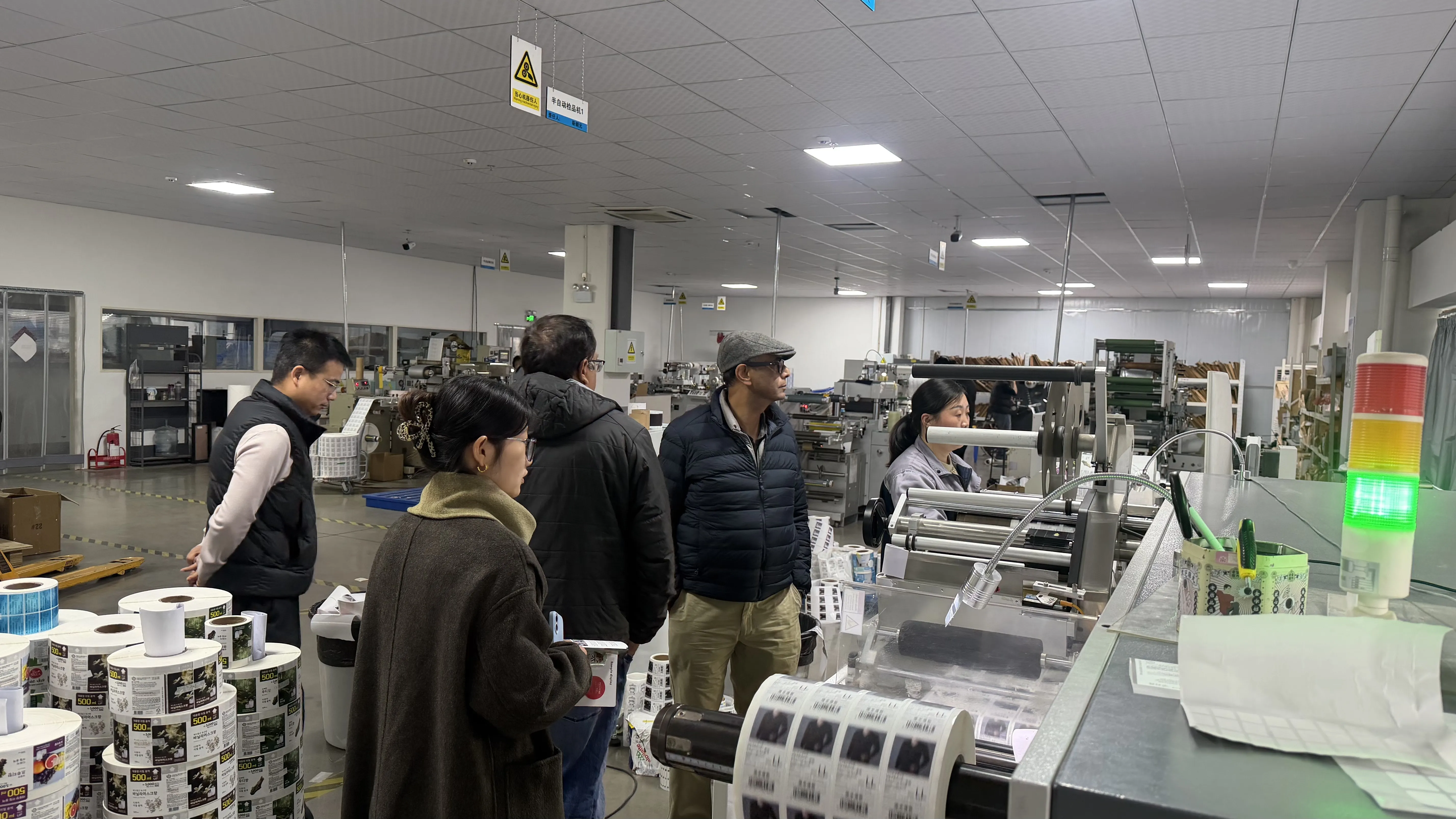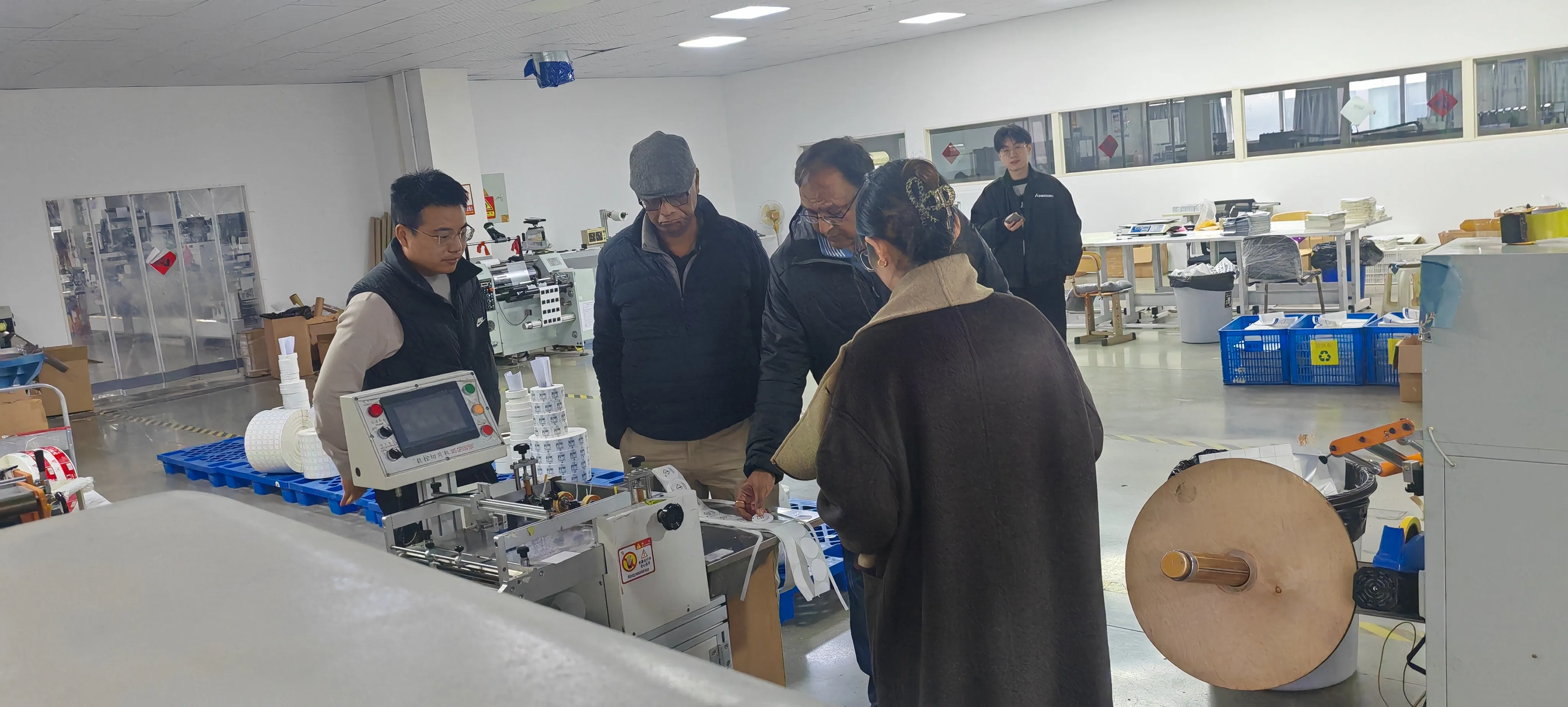 Клиентите се фокусираа на нашата напредна опрема за печатење, стандардизиран систем за управување со производството и строг процес на контрола на квалитетот, прашаа детално за основните прашања како што се материјалите на производите, ефикасноста на производството и капацитетот за прилагодување. Придружниот персонал одговори стрпливо и на лице место го демонстрираше производниот процес и ефектот на готовиот производ на различни примероци на етикети.