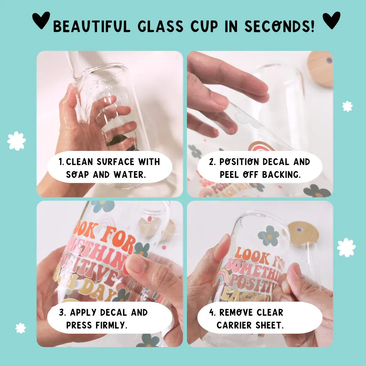 За стаклени чаши по префрлањето, избегнувајте контакт со вода со висока температура и остри предмети во рок од 24 часа за да спречите лупење на шаблонот. Кога чистите, користете мека крпа и неутрален детергент. Не тријте ја областа со шаблон со челична волна или четки со тврди влакна. Чашата може да се измие рачно или да се чисти во благиот циклус на машината за миење садови.