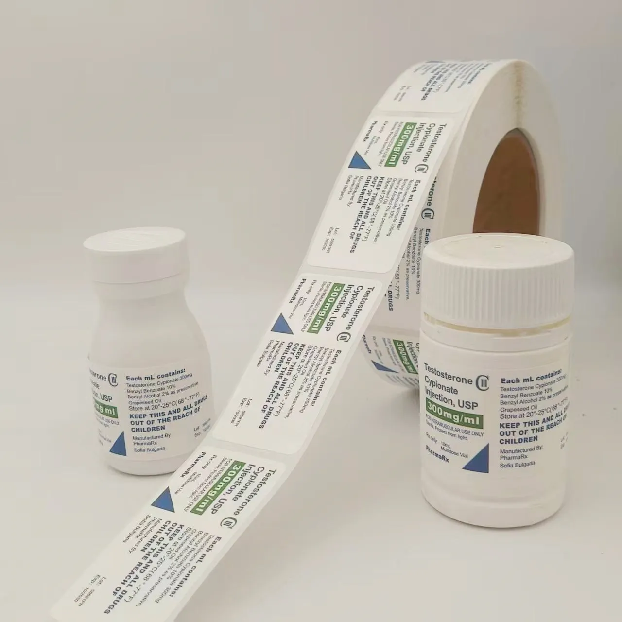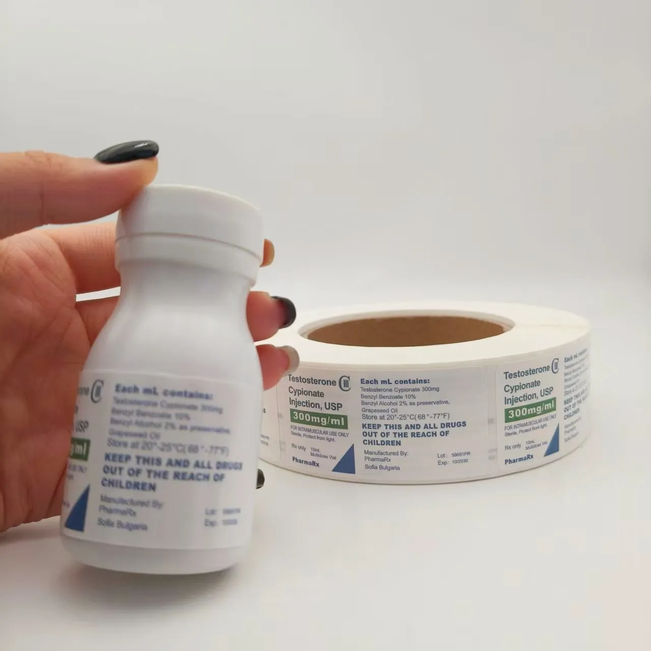 Спецификации на шишето: Соодветувајте ги дијаметарот, висината и обликот (круг, квадрат, итн.) на шишето со лекови за да се осигурате дека етикетата може целосно да се залепи без да го надминете шишето или да ги покриете устата и дното на шишето.