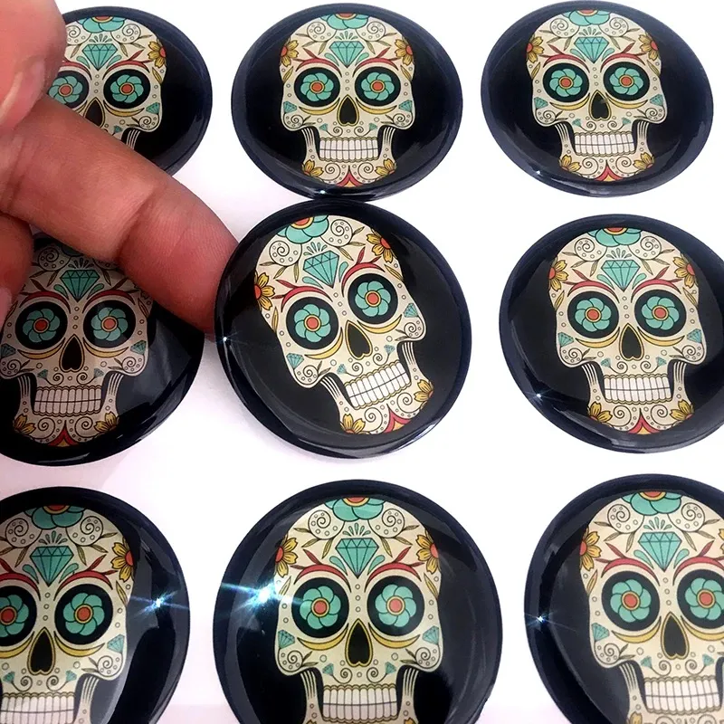 Единствен тродимензионален ефект: Преку посебен процес, се формира конвексна полиуретанска купола на површината на налепницата, презентирајќи кристално чист и стереоскопски 3Д ефект, што ја прави шемата на тркалезни епоксидни етикети поживописни и привлечни, подобрувајќи ја визуелната привлечност.