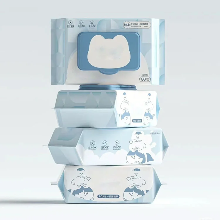 При дизајнирање на етикети за влажни марамчиња, треба да се земат предвид и естетиката и читливоста на етикетите. Текстот на етикетите на влажните марамчиња треба да биде јасен и лесен за читање, а шарите и боите треба добро да се усогласат за да го привлечат вниманието на потрошувачот и да ја подобрат целокупната слика на производот. За различни видови марамчиња. За производи како што се марамчиња за бебиња, марамчиња за миленичиња, антибактериски марамчиња или марамчиња за чистење, дизајнерскиот тим на JOJO може да обезбеди соодветни етикети за влажни марамчиња за различни видови марамчиња. На нашите клиенти им нудиме естетски пријатни и привлечни дизајни, истовремено обезбедувајќи дека нема да недостасуваат важни информации!